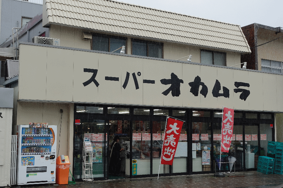 ここですぐに岳南電車には乗り換えず、持ち込み用の食材を買うためにスーパーへ向かった。向かったのは駅からすぐ近くにある「スーパーオカムラ」であり、ここは時たまテレビにも登場するような店である。