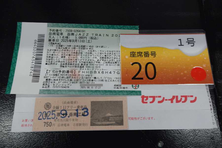 その翌週に乗車するのが、岳南電車の「JAZZ TRAIN」である。岳南電車についてはこの大人鐡シリーズの58回目ですでにビール電車に乗車済であるが、豊橋鉄道だけではネタ不足かと思い、追加したものである。ビール飲み放題と簡単なおつまみ(乾き物)だけで5,000円(+手数料110円)するが、これは読んで字のごとくジャズの生演奏の料金が入っているためである。