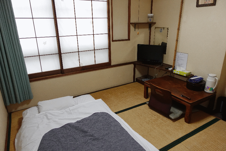 駅から歩いて10分程度の場所にあった古い旅館は、超和室という感じであった。