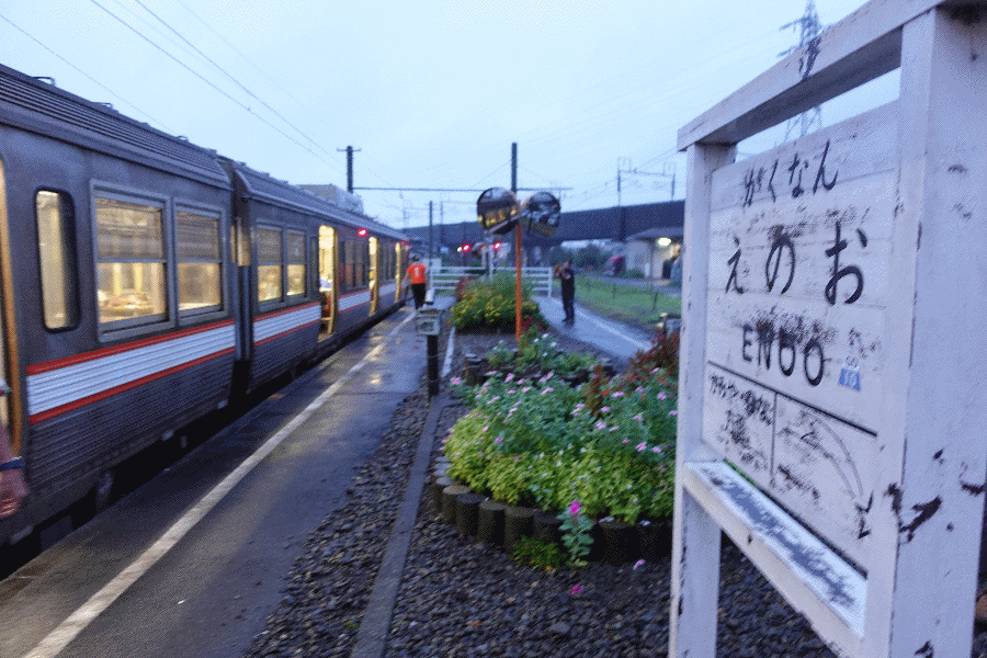 本来であれば18時40分着であり、41分発の列車に飛び乗って吉原本町に戻る予定であったが、JAZZ TRAINが少し遅れたためドアが開いた時点で向かいのホームにいた列車は出発してしまっていた。仕方なく駅周辺で時間を潰してから、19時12分の列車で戻り、安旅館へ帰って行った。