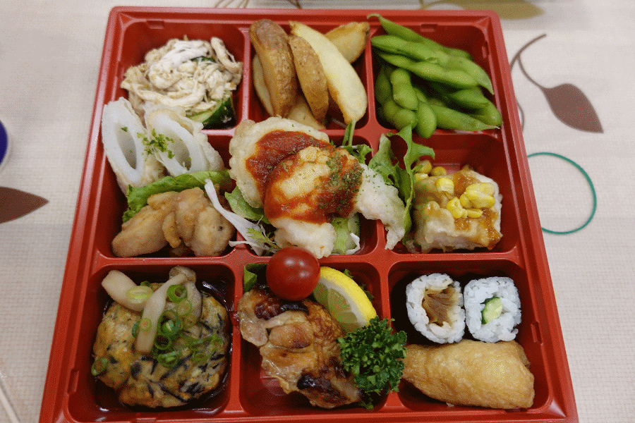 特製おつまみ弁当は、その名の通りご飯ものは最小限で、ビールに合いそうなツマミが中心である。先ほど買っておいた鮎と一緒に、それらを頂き始めた。