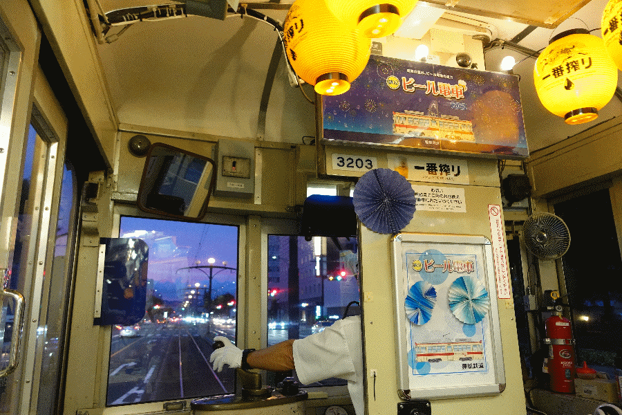 19時30分、運動公園前電停を出発した。駅前まで残り30分、ビールを繰り返すだけである。