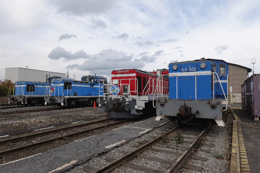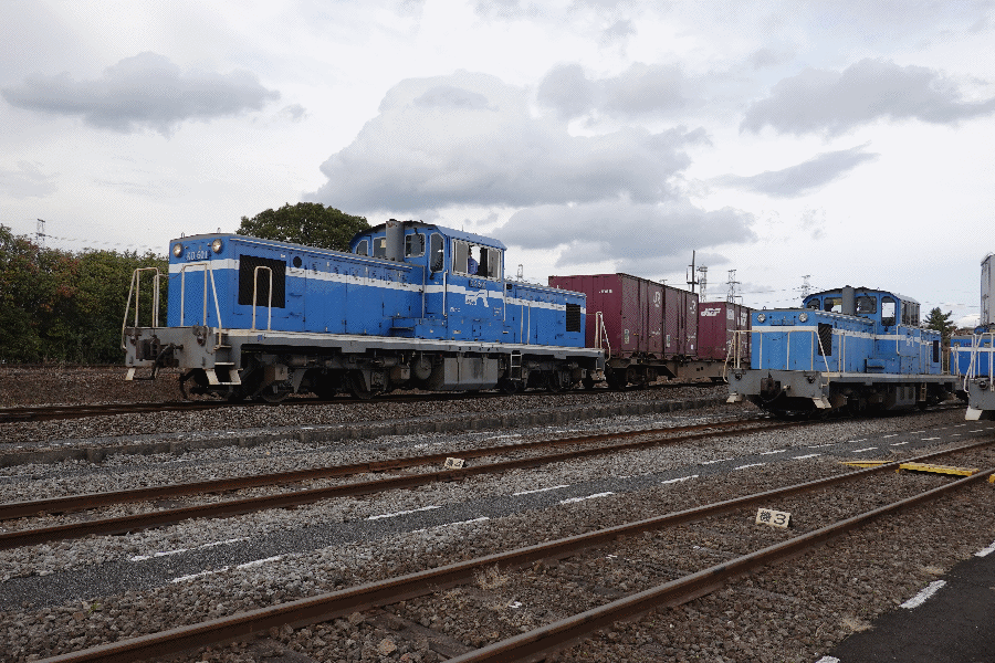 バスでしばし移動し、京葉臨海鉄道千葉貨物駅へ。構内では、機関車が総出でお迎えである。