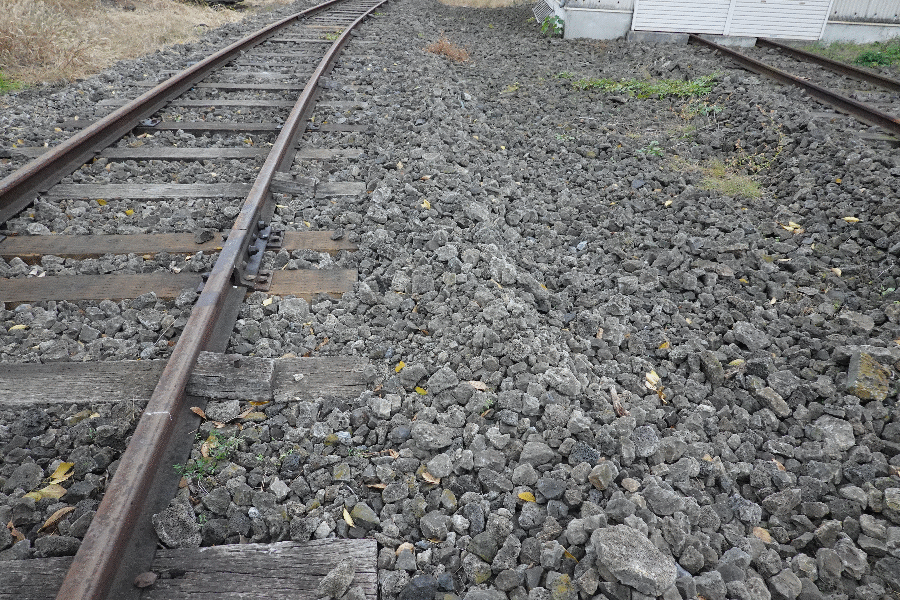 線路の近くで停車し、そこからは線路上を歩いて見学地へと向かった。歩きにくい線路上であるが、なぜかというと普通のバラスト(敷石)ではなくて、製鉄所で出たスラブを敷き詰めているためであるという。時折、大きな塊があったりする。