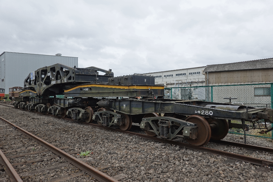 なお同じ引込線内には、シキ280も係留されている(車軸は16)。車両の目的はシキ600と同じであるが、こちらももちろん引退済みである。これはこれで巨大な車両であるが、シキ600を見た後だと小さく見えてしまうのが不思議である。