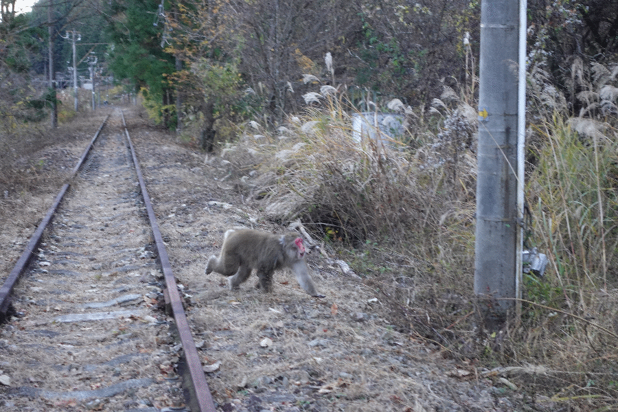 しばらくすると、猿の集団と遭遇した。彼らを刺激しないよう、見守るのみである。