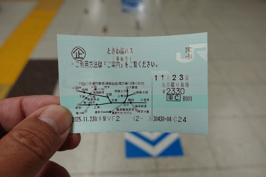 5時台に自宅を出て、JRを乗り継いで取手駅までやって来た。券売機で買ったのが、「ときわ路パス」である。この切符は原則として茨城県内の鉄道が乗り放題なのであるが、真岡鉄道に関しては終着の茂木まですべて乗車できるようになっている。真岡鉄道は大部分が栃木県にあり、また取手から茂木まで往復で5,180円にもなるから、有難い存在である。