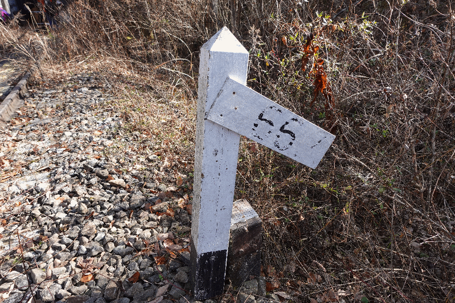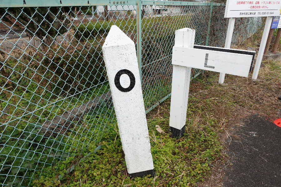 続いて、長倉線の廃線跡巡りである。スタート地点には長倉線用の0キロポストがあるが、もちろんこれは意図的に置かれたものである。