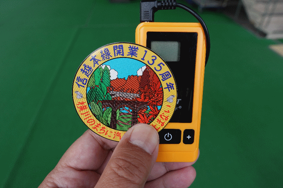 大宮発7時49分の新幹線に乗り込んで、軽井沢には8時42分に到着した。受付は9時からであるためしばし時間調整をしてから、旧軽井沢駅付近にある仮設受付へ向かった。渡されたのは、ステッカーと受信機である。