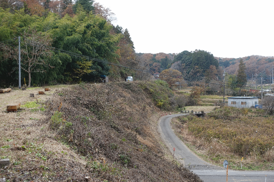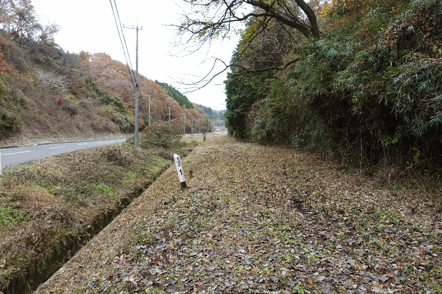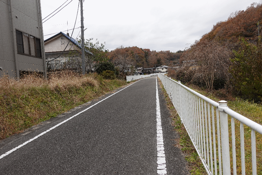 いったん大きな道路に出てしばらく歩くと、再度長倉線跡を歩くこととなる。もう舗装はされていないため、廃線跡のような雰囲気と同じである。