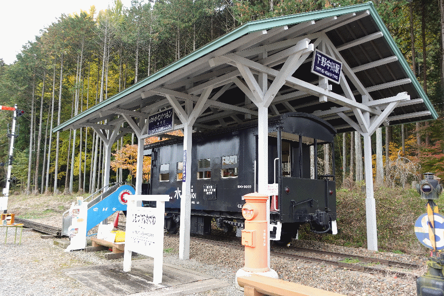 茂木駅から約6キロ歩き続けて、下野中川駅となるはずであった敷地に辿り着いた。敷地内には車掌車があり、またそれを覆う駅舎のような建物もできている。全日空のタラップについては、車掌車を贈呈してくれた人が保存していたものであるという。