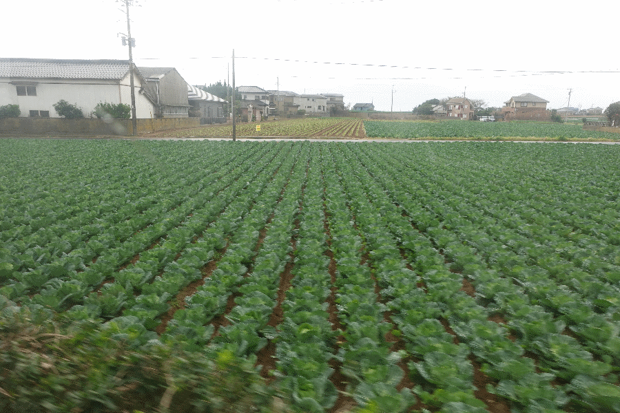 車内では、ソムリエの資格を持つ社員があれこれと説明をしてくれている。車外は、キャベツ畑のオンパレードである。
