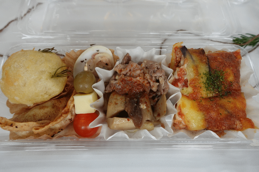 話を聞きつつ、ワインを飲んでツマミを頂くのみである。おつまみには、ラザニアや焼肉などがあるが、ワインは右から(薄い順に)、料理も味が薄い順に飲むことを推奨された。ワインを提供している業者の説明もあり、今は醸造しているのみ(ブドウは山梨などから持ってきている)であるが、これからは銚子でもブドウ栽培を進めていくという。