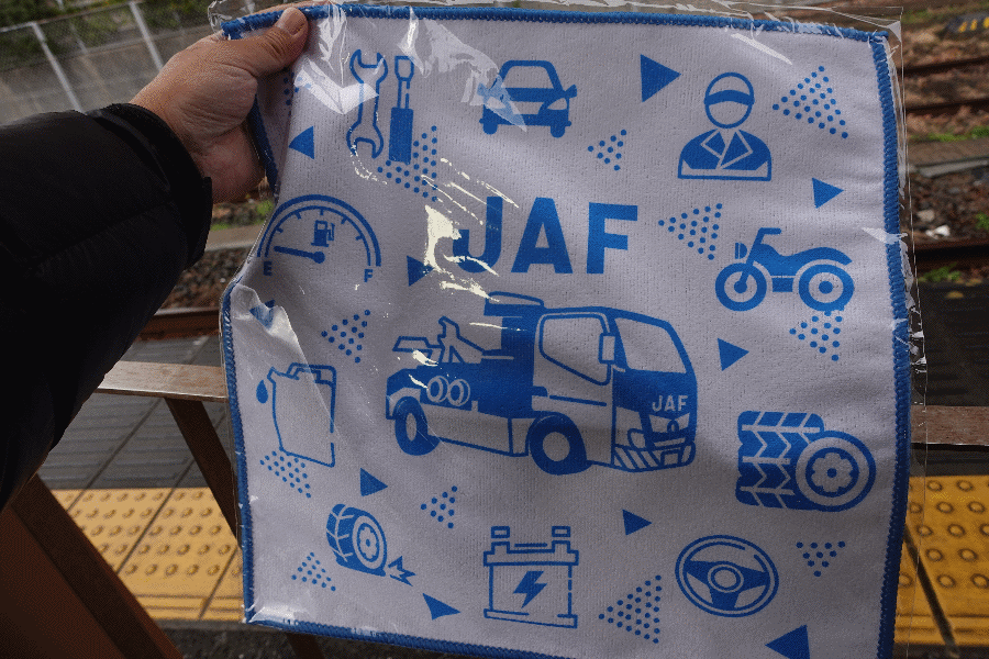 車内でアンケートに答えると、巾着かクロスいずれかがもらえるということであったので、後者を頂いて銚子を後にした。