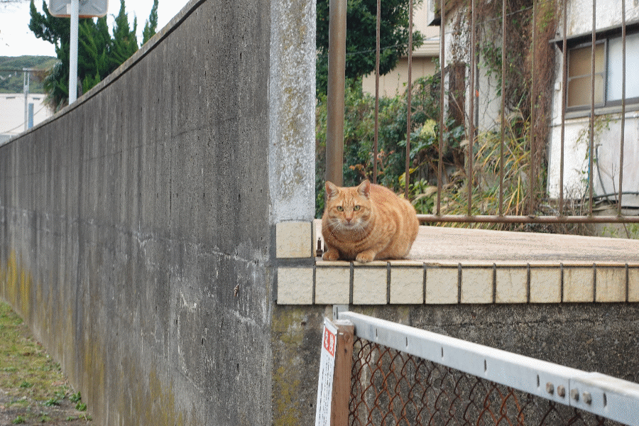 さらに歩き続けて、観音駅まで歩いてみた。銚子電鉄の駅間は非常に短いため、ここへの移動もあっという間であった。列車の往来がない時間帯であり、待ち受けてくれたのは猫だけであった。
