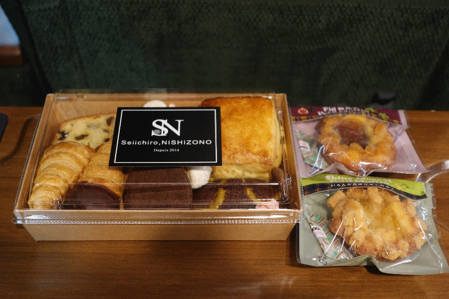 スイーツボックスにはスコーンやサブレやコルネなどが入っており、羽曳野のいちじくや太子町のみかんなど、地元の食材がふんだんに使用されている。また、パンフレットやウェブサイトでの事前案内には無かったが、マフィンが2種(いちじくとシャインマスカット)が追加されていた。