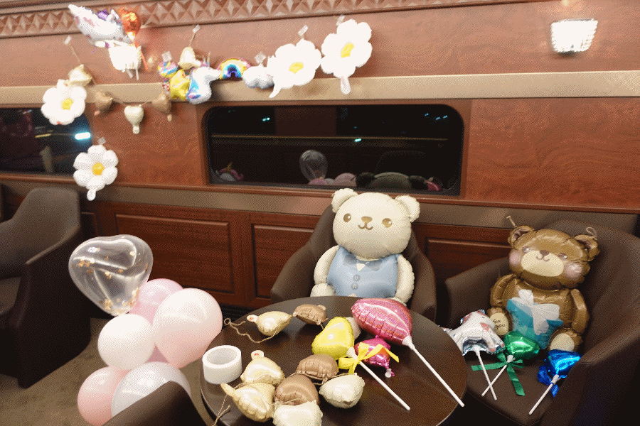 バレンタインに合わせたイベントということもあり、車内では各所でバレンタイン用の装飾がなされている。せっかくであるため、ラウンジ車両などにも行ってそれらを撮影して来た。