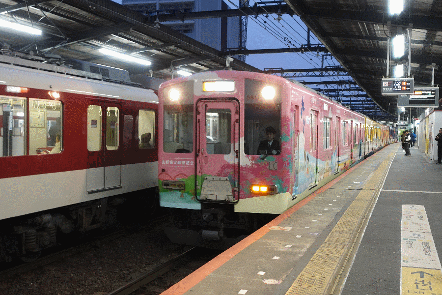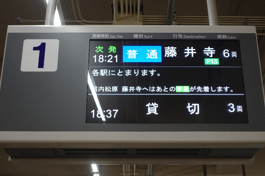 19時38分、橿原神宮前に到着した。短い時間であるが、私はここで終了である。なおツアー自体はまだ継続しており、この駅で入出線を繰り返してホームを移動して20時26分まで滞在し、終着の大阪阿部野橋に戻るのは21時22分である。当初は最後まで乗ることも考えたが、大阪のホテルは高いし、翌日に帰るのも遠くなるため、橿原神宮前で降りることにしている。