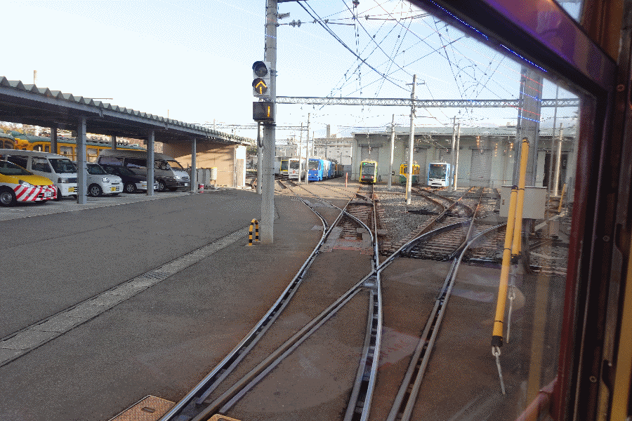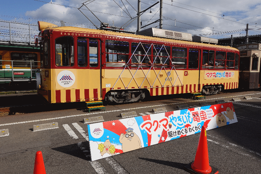 集合場所である鹿児島市交通局まで移動すると、マグマやきいも電車はすでに係留線で待機していた。
