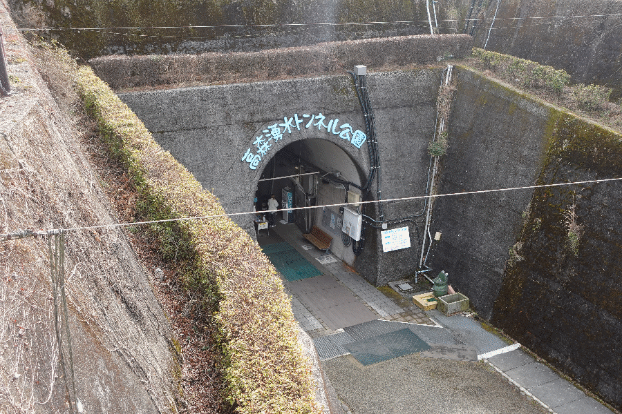 高千穂バスセンターから「あそちほ号」に乗り高森までやって来たが、そこでは下車せずに、1つ先の「高森湧水トンネル公園入口」バス停で下車した。すぐ近くにはバス停名となっているトンネルがあるが、これは高千穂方面への未成線跡である(工事中に大量の水が出てしまい、建設が中断されたもの)。
