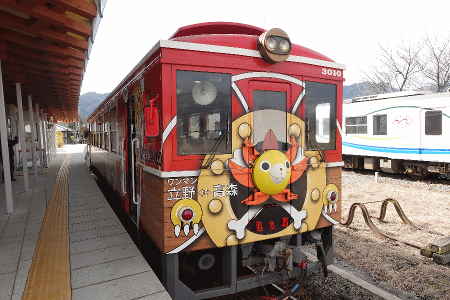 駅構内には漫画家による色紙が大量にあり、漫画好きとしては楽しい場所である。ホーム上には出発に備えたサニー号がいて、インバウンド客もいて結構賑わっていた。