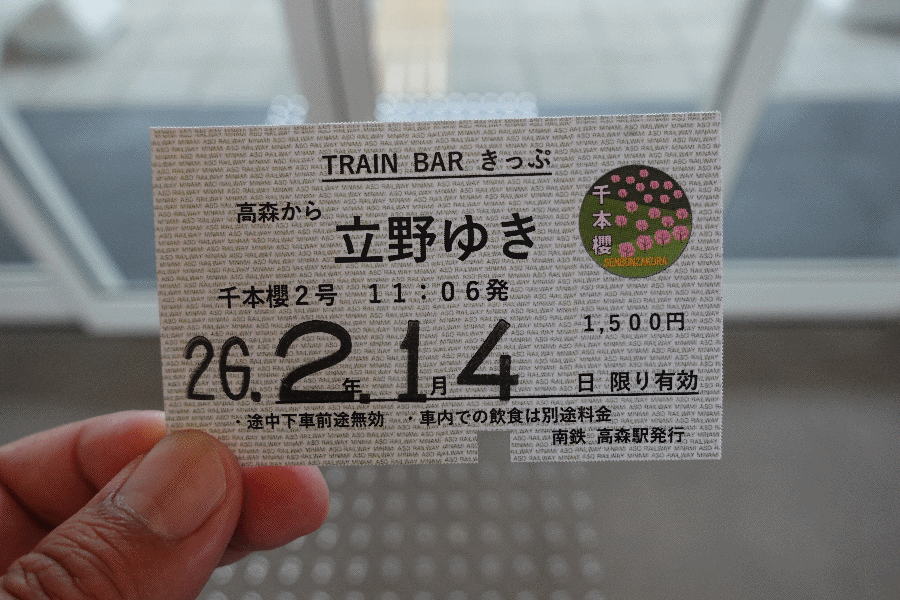 南阿蘇鉄道のTRAIN BAR千本櫻は、改造されて車内にカウンターバーが設置された車両で運行されるものである。料金は高森から立野までで1,500円(通常運賃+1,010円)であり、飲食は個別に支払う形式となっている。