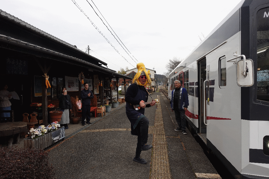 各駅では、駅で店を営業している人たちがお見送りをしてくれている。いかんせん、乗客は私だけなので申し訳ない感じである。