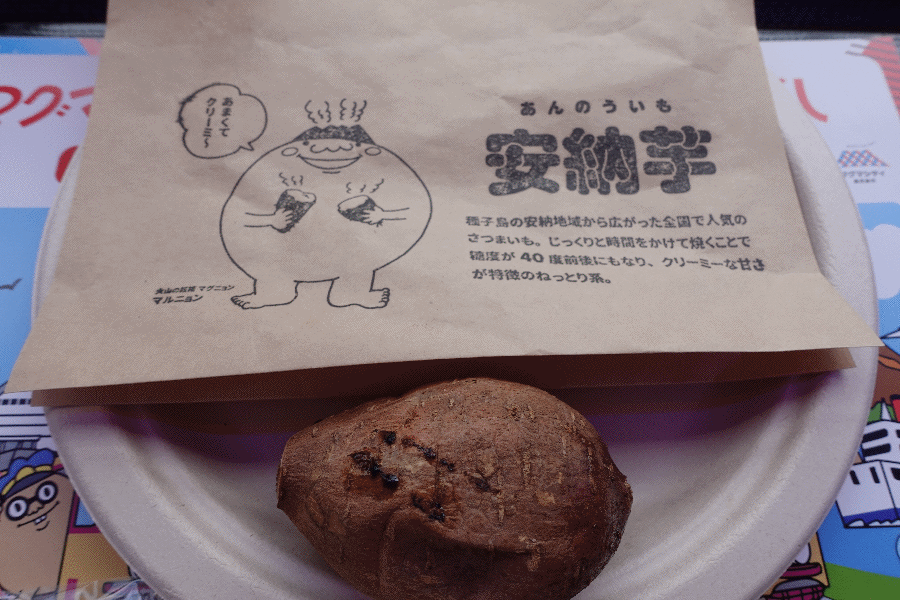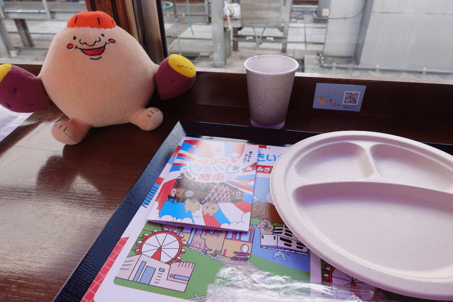 マグマやきいも電車は交通局が主催するものではなく、イベント業者が実施しているようである。以前「マグマ深海魚電車」の記事を見付けて気になっていたが、開催頻度が少ないことと、抽選倍率が高いためこれまで乗ることができなかった。2か月前に鹿児島でプチ移住した際に、桜島フェリーの中で今回のやきいも電車のポスターを見掛けて開催日を確認すると、ちょうど宮崎県でプチ移住する予定と重なっていた。ということで申し込んでみたところ、最初の抽選では外れてしまったが、キャンセルがあったようで復活当選を果たすことができた。やきいも4種が提供されて、価格は3,000円也。