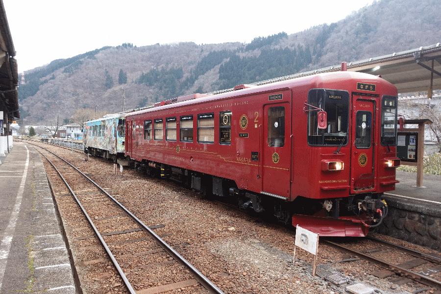 その後も散策を続け、スーパーで車内用の追加ツマミなどを買い(通常の「ながら」のランチプランなどは持ち込み不可であるが、今回は案内に「持ち込み可」とあった)、関駅に向かった。すでに、観光列車用車両「鮎号」が入線していた。