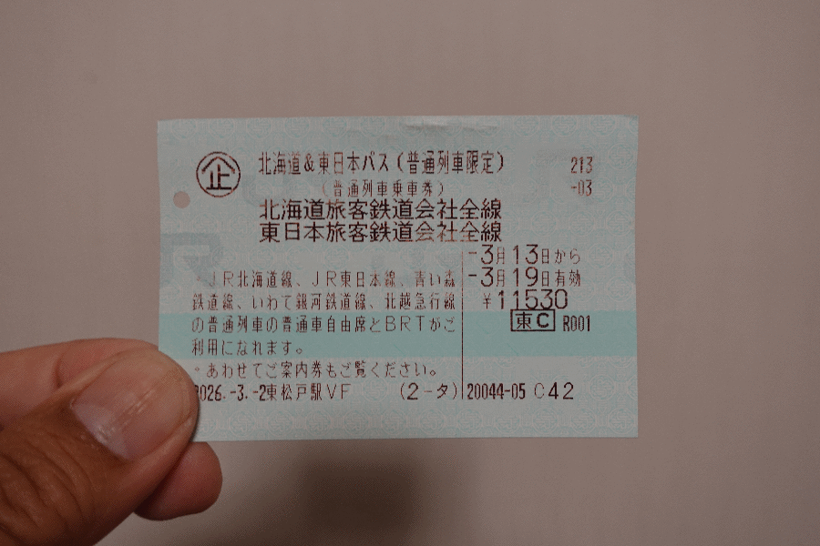 6時過ぎに家を出て、最寄駅へと向かった。上述した通り、今回は「北海道&東日本パス」を使っての移動となる。7日間有効であり、そのうち4日分を今回の旅行で使うため、それでもまだ3日分残ってしまう。これについては、帰ってきてから適当な日帰り観光(梅の花を見に行ったり、買い物をしに行ったり)に使おうと思う。