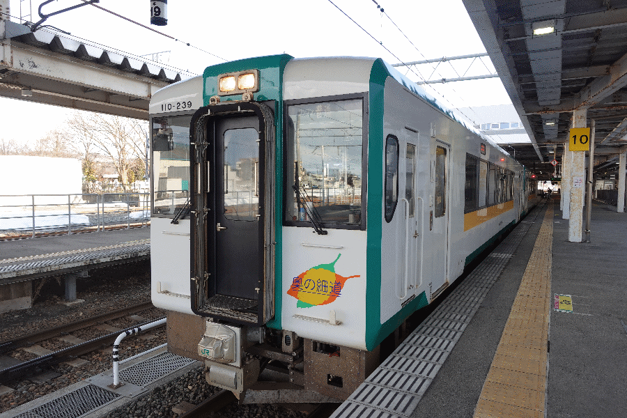 6時40分の列車に始まり、ひたすら乗り継ぎを繰り返して、新庄には16時04分に到着した。ここで乗り換えるのが、陸羽西線である。陸羽西線は、隣接する道路のトンネル工事の影響で3年8か月もバス代行が続いていたが、つい2か月前にやっと再開したばかりである。