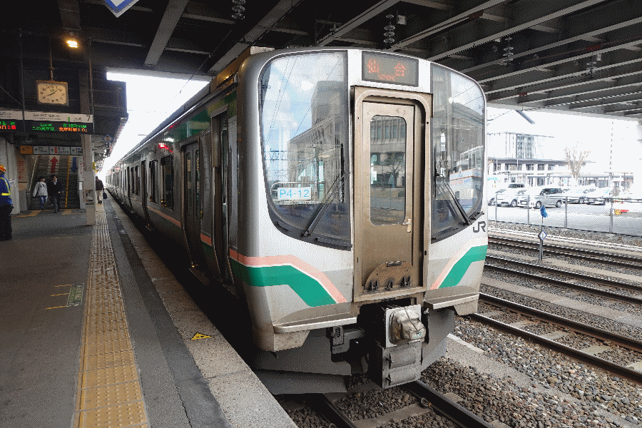 山形からの復路としては、①奥羽本線で福島まで移動してそこから東北本線、②そのルートの途中の郡山から水郡線と常磐線、③同じく郡山から磐越東線と常磐線、などがあるが、東北本線はロングシート地獄になるし、水郡線や磐越東線は本数が少ないため、仙山線で仙台に行ってそこから常磐線で帰ることにした。