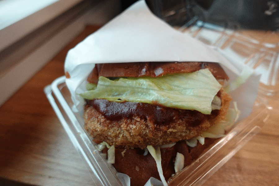 同駅を13時07分に出発して、石川町のものとして提供されたのが「石川はちみつ牛コロッケ」を挟んだコロッケパンである。立て続けにあれこれ提供されているため、これはもう持ち帰りである。