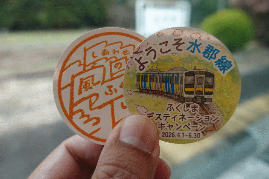 車内では、水郡線に関するクイズ大会が行われた。5問あり、1問でも正解すればノベルティ(ステッカー)が貰えるという、ハードルの低いものである。