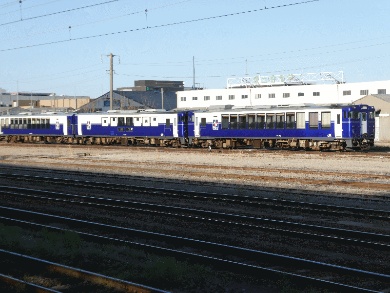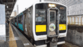 予定されていた16時48分、列車が入線してきた。1号車が先頭であり、いつも通りの3両編成である。ただし今日は、2号車のラウンジ(売店)は非営業となっている。