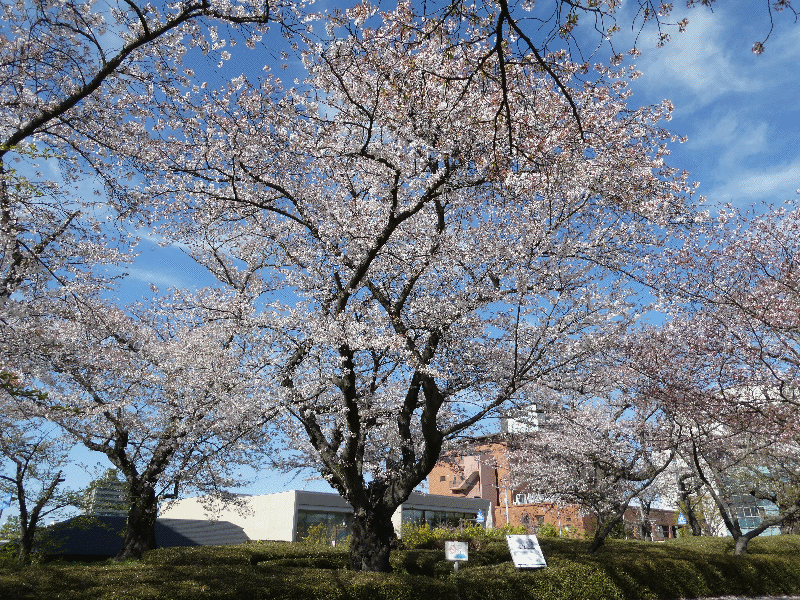 ほとんどは葉桜になっていたが、明治11年(1878)年に植樹されたという日本最古級のソメイヨシノは、まだギリギリ残っている感じであった。