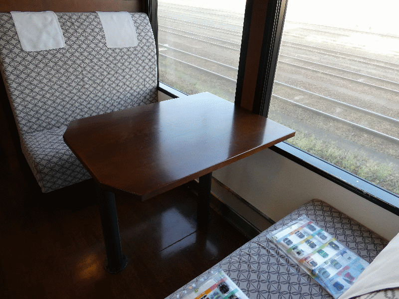 早速自席へ。ボックス席で相席であるが、4人詰め込むのではなくて、1つは開いていた。進行方向の窓側であったので、場所としては最適なところである。