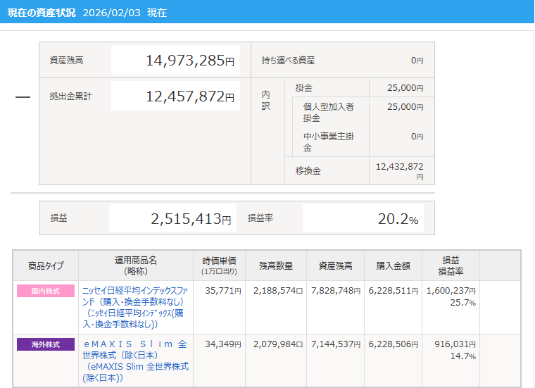 ということで、約1,500万円のすべてを、日経平均に変更した。別に米国のAI相場を必要以上に心配している訳ではないが、これからはもう少し日本株に力を入れていく予定である。