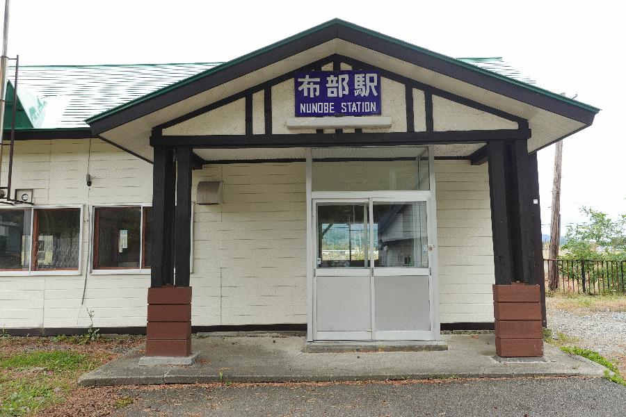 1時間半ほど歩き、やっと布部駅に辿り着いた。駅舎も駅名も残っており、立派な木もそのままである。この駅は、ドラマ「北の国から」で主人公の黒板五郎と純、蛍の兄妹が降り立った駅であり、駅のすぐ横には、作家の倉本聰氏による「北の国 此処に始る」と書かれた碑が残っている。