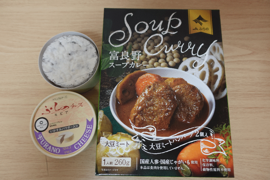 今日の夕食は、チーズ(と昨日まで買った食材の余り)で呑み、富良野スープカレーでの締めとなる。