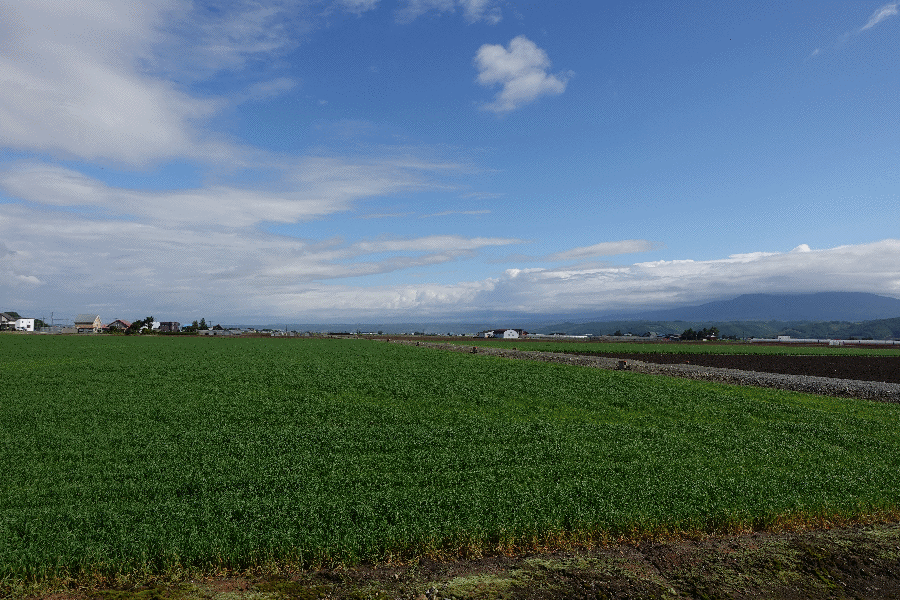かんのファームから35分ほど歩き、やっと到着した。少し雲が多くなってきたが、それが良いアクセントとなって背景になっている。