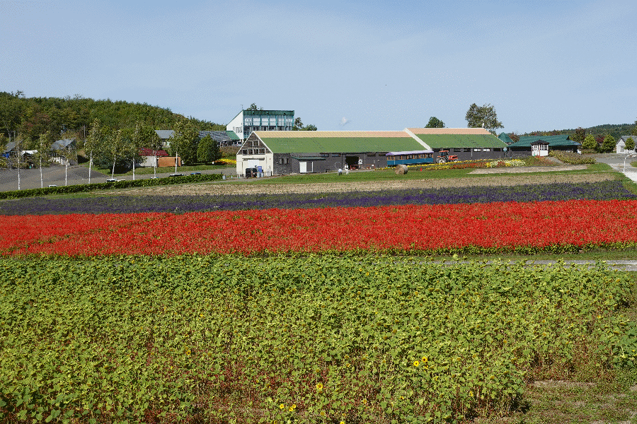 撮影を終えてから、ファーム富田へ向かった。ラベンダーの季節が終わっていることはこちらも同じであるが、観光要素として有名であるため何台もの観光バスが停まっており、大量の観光客(特にインバウンド)がいる。ラベンダー以外の花も多くあるため、この季節でも訪問する価値はありそうである。