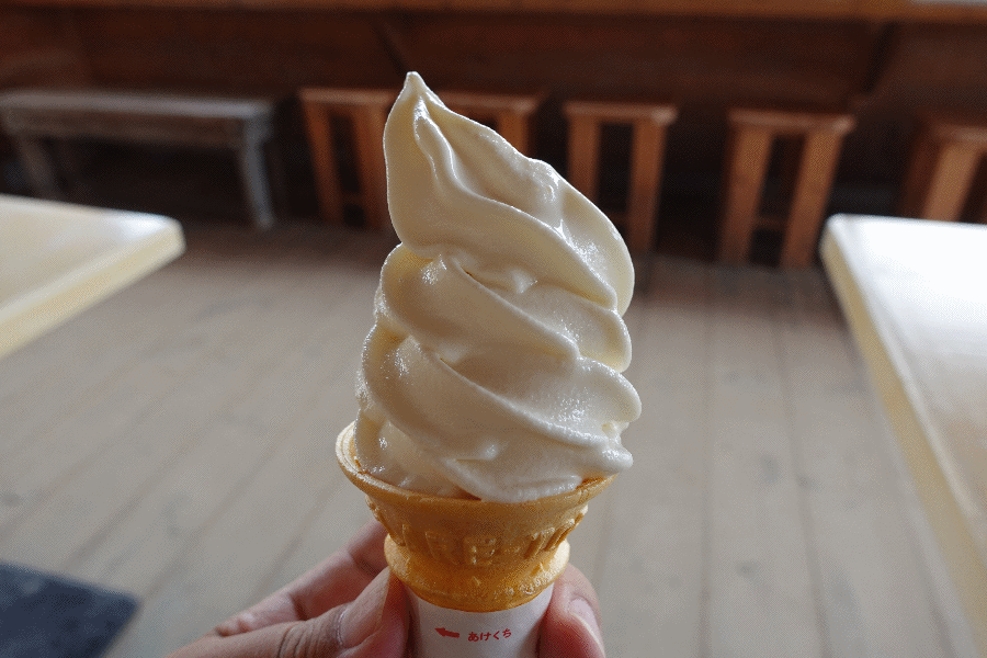 富良野でのプチ移住を始めてから、この手の場所(お花が植えてある場所)に何か所か訪問しているが、「その手の食べ物」(メロンとかアイスとか)をまだ食べていない。ということで、牛乳ソフトクリームを頂くことにした。