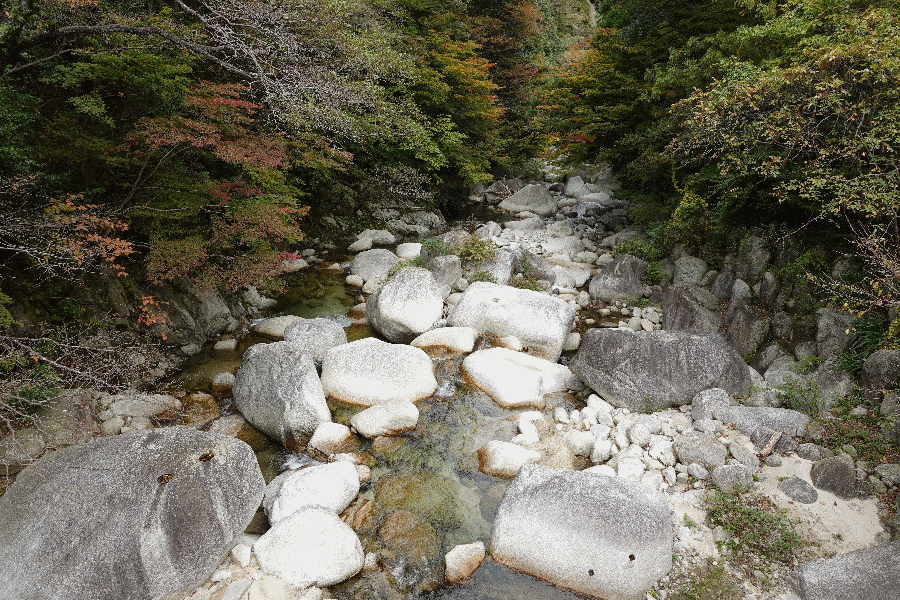 往路はバスで来たが、復路は渓谷沿いに歩くことにしている(紅葉シーズンでもあるし)。平日だというのに、道路上はロープウェイ乗り場に向かう車列で大渋滞であった。