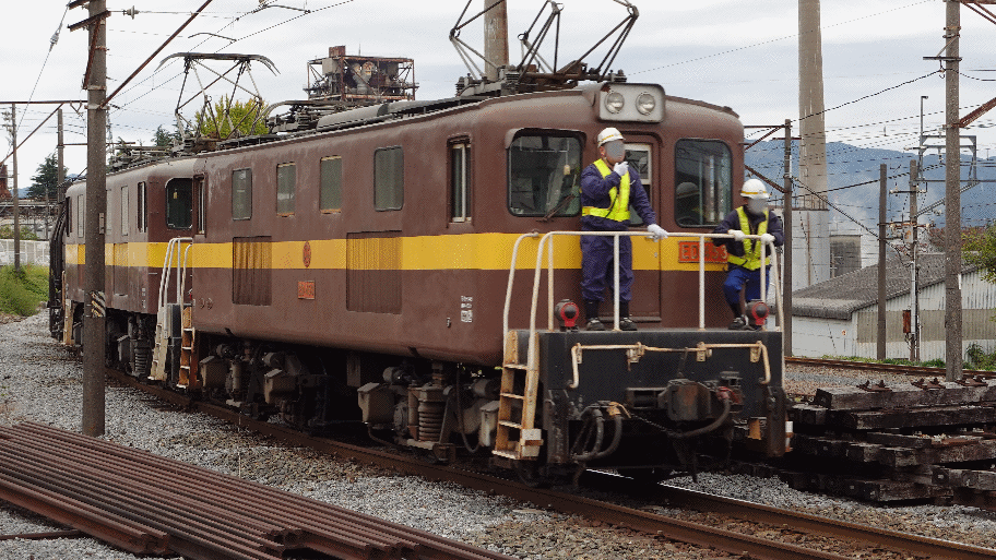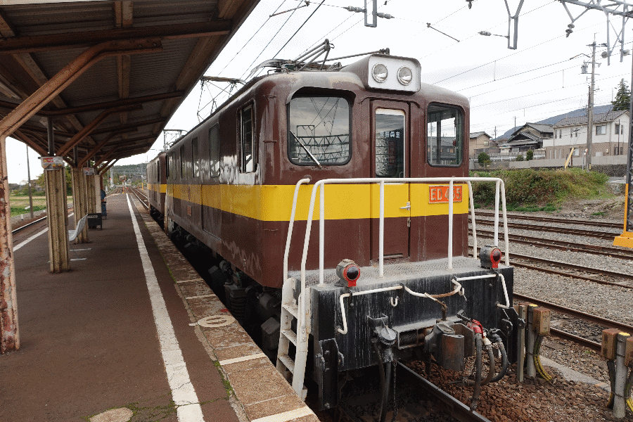 アンバランスな編成は東藤原駅構内へ進んでいき、貨車だけが引込線内に取り残され、そして機関車2両はホームに向かって来た。電気機関車は、それぞれ昭和29年製と32年製であり、かなりの年季である。