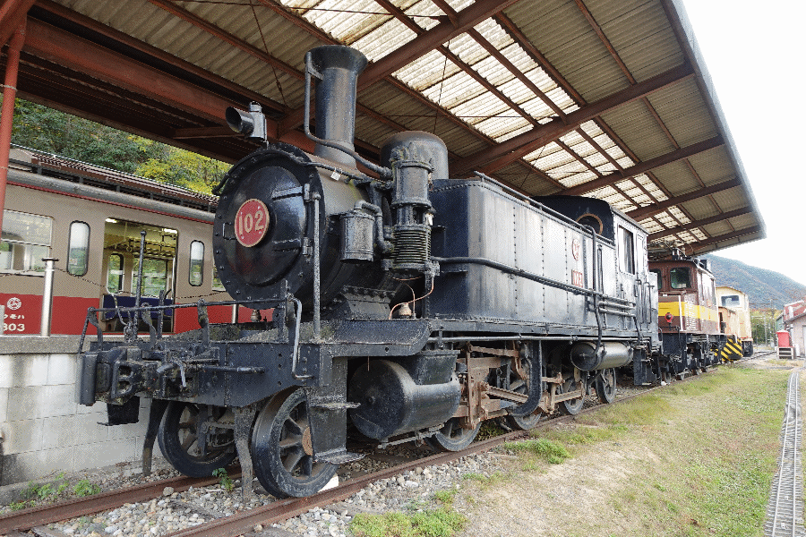 15時21分の列車に乗り、終着の西藤原へ向かった。駅付近は公園が整備されており、古い車両もいくつか展示されている。