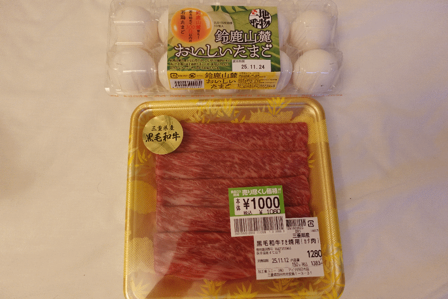 駅近くにあるスーパーに向かうと、三重県産の黒毛和牛が少し安くなっていたので、同じく地元(鈴鹿)産の卵を買い、今晩は「すき焼き」決定である。