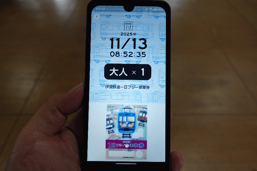 ここで伊賀鉄道に乗り換えるが、今日は一日乗車券を利用する。デジタルより紙で買いたいが(見せるのが簡単であるし、記念として残る)、この駅では買えないため、仕方なくデジタルである。