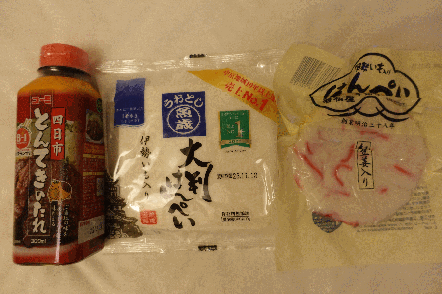 夕食であるが、今日は三重県産の刺身が売っていなかった。どうしようかと思ってあれこれ探してみると、伊勢の「はんぺい」があったので買ってみた。四角い方は「はんぺん」そのものであり、丸い方は歯ごたえのある練り物であった。四日市トンテキのソースもあったので、これで豚肉を焼こうと思う。