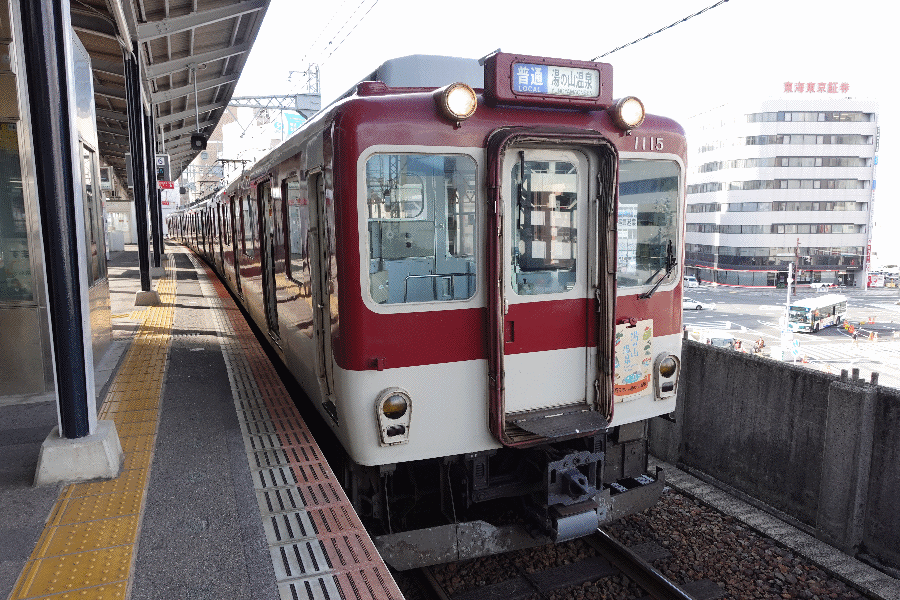 部屋でゆっくりしてからホテルを出て、駅までやって来た。まずは、近鉄湯の山線への乗車である。